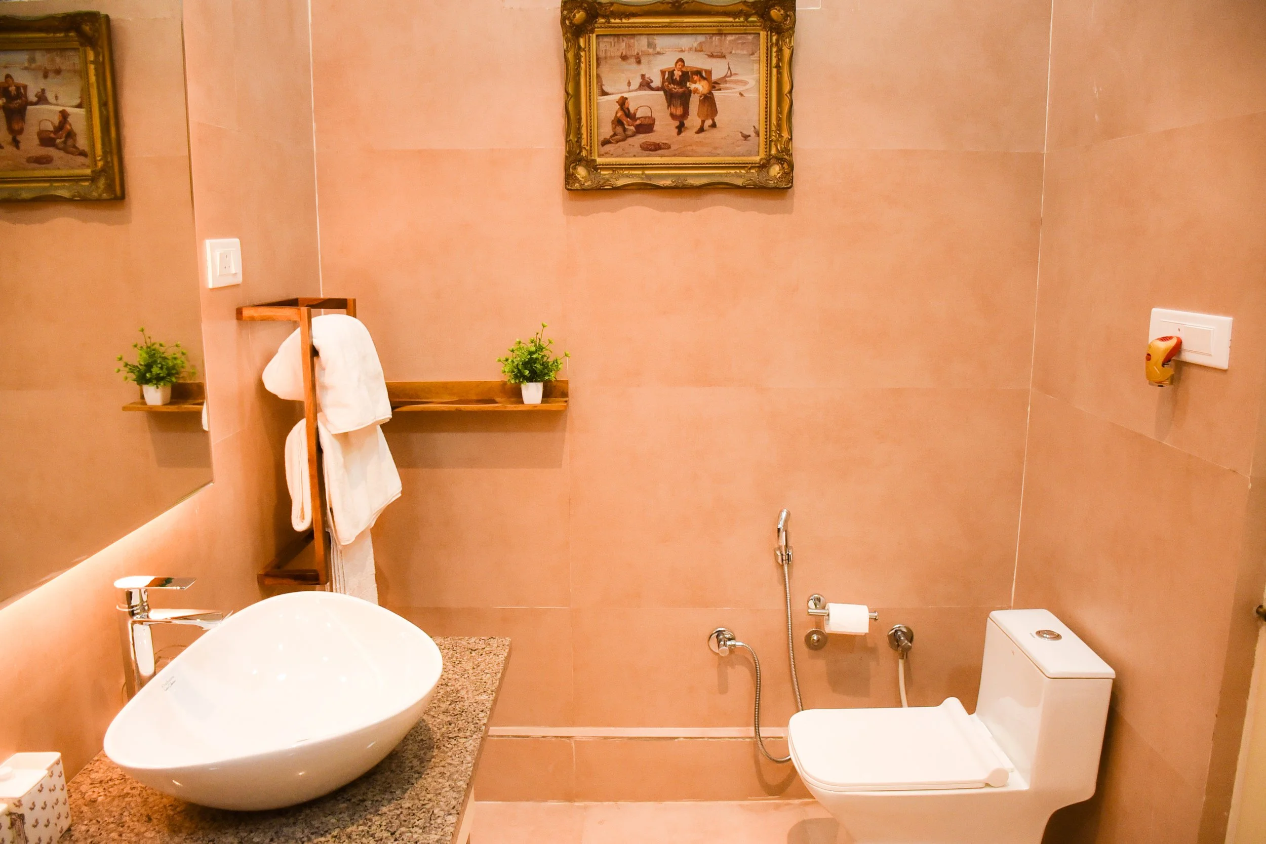 Styled in Boho theme, has a double bed and comes with a study table. It also features a big Deewan which can comfortably sleep 2 more adults, with ensuite bathroom.
